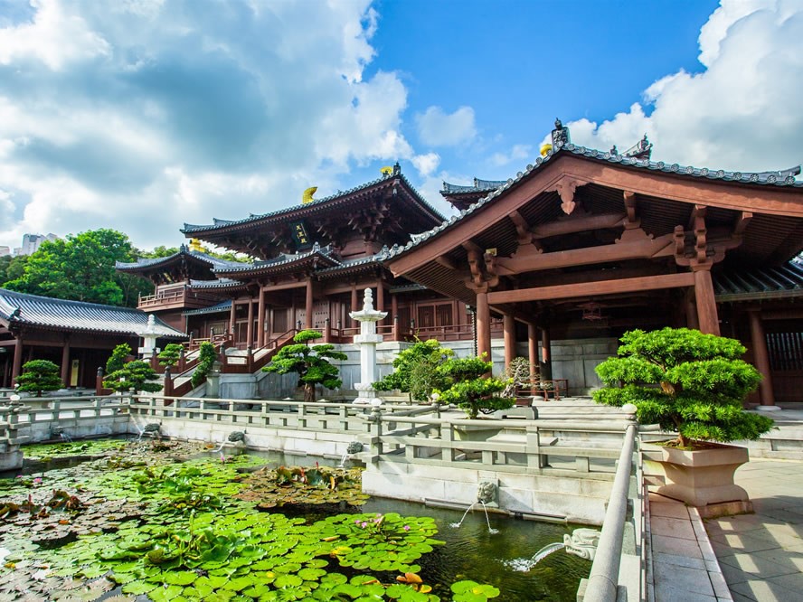 志蓮淨苑苑址原為一所由佛教徒捐贈的花園別墅。1994年,志蓮淨苑展開了重建工程,依照中國傳統佛寺「七堂伽藍」規模佈局,以敦煌莫高窟第172窟的壁畫《觀無量壽經變圖》為設計藍圖,採用傳統手工建造技術,建成唐式木構建築群,於2000年正式開放給公眾參觀。