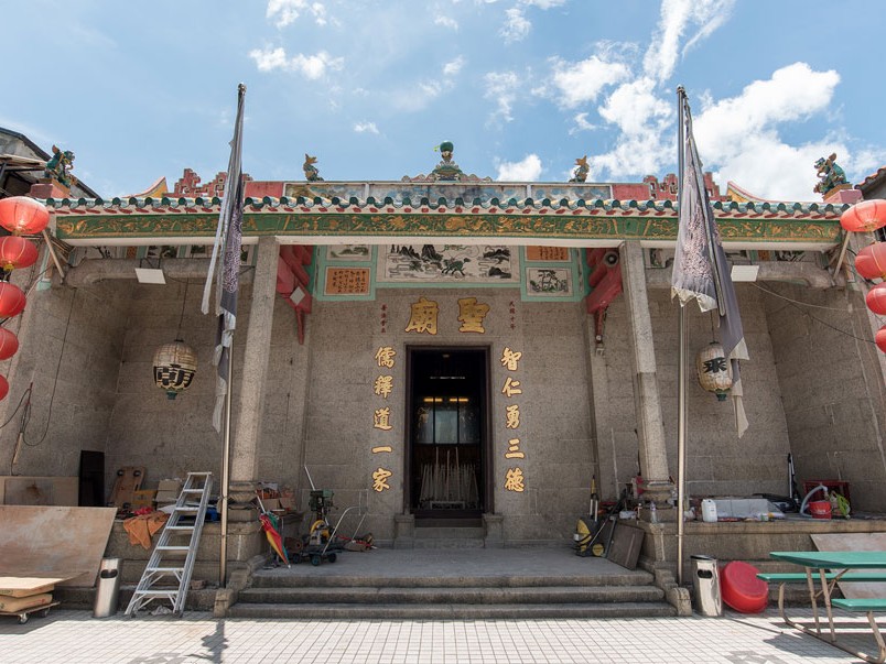 三聖廟位於三聖邨傍的麒麟崗,因尊奉儒、佛、道三教先師,即孔子、釋迦牟尼和玄門關教太上道祖,而稱三聖廟。該廟於1921年建成,於2009年評為二級歷史建築。廟旁的麒麟崗公眾公園有一塊巨石,石前碑文記述「填海之前,岸線所在,以此石為界。」,是昔日屯門海岸線之標誌。